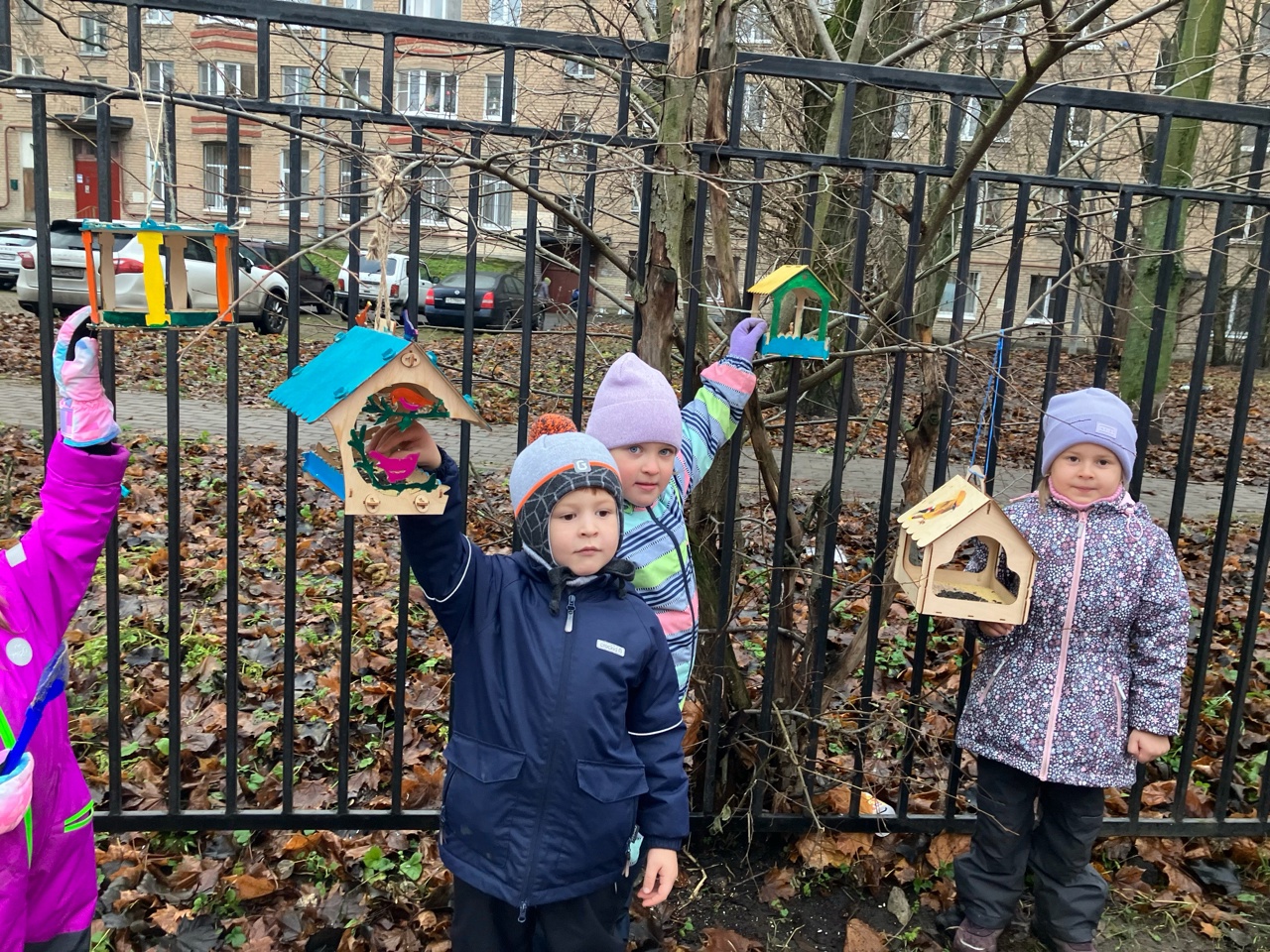 Дети старших групп ежедневно дежурят в «Птичьей столовой», во время прогулки чистят кормушки, пополняют их свежим кормом.
