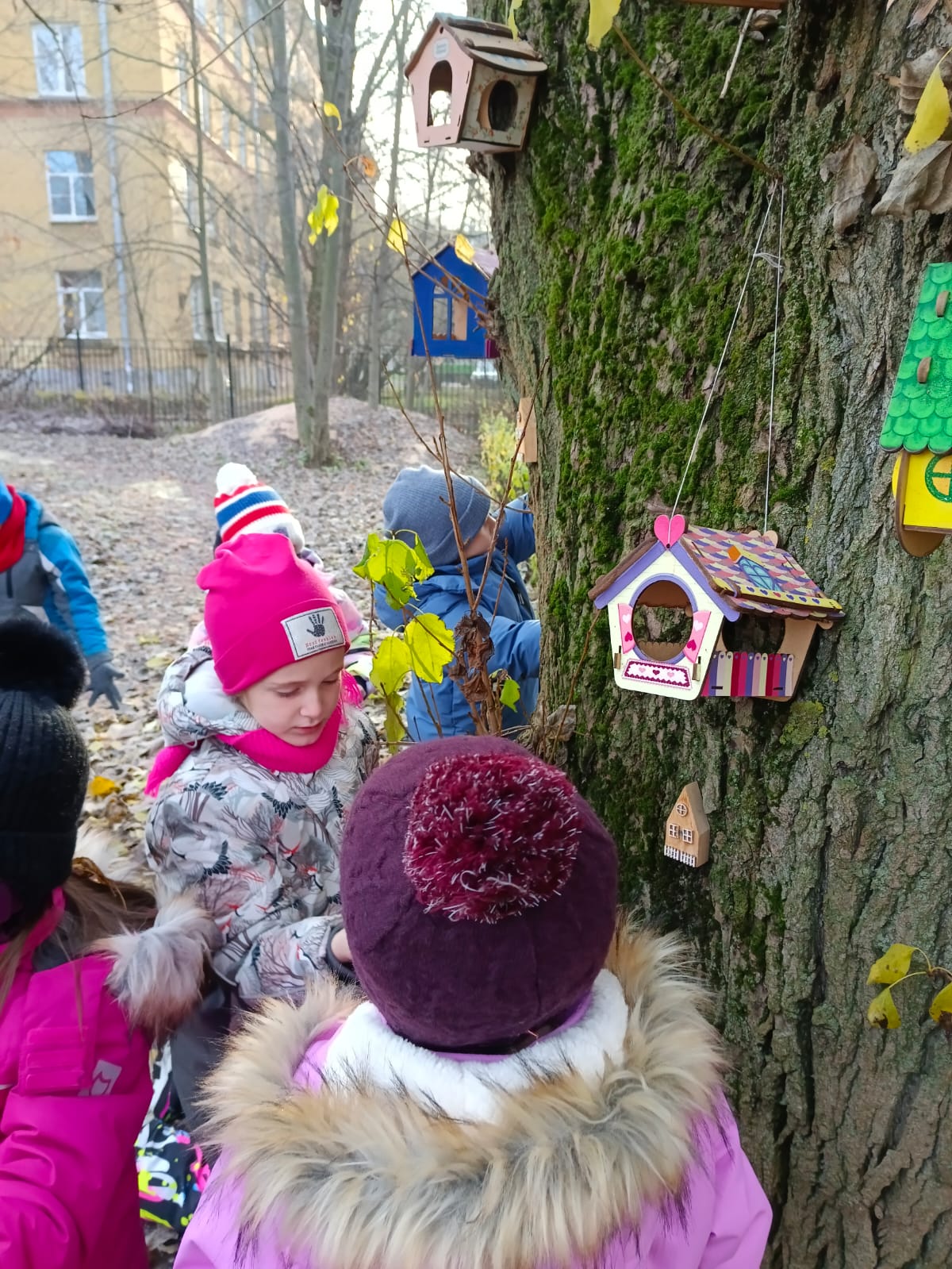 Дети старших групп ежедневно дежурят в «Птичьей столовой», во время прогулки чистят кормушки, пополняют их свежим кормом.